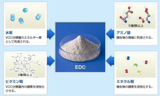 EDC系列藥劑含有形成特有微生物群落所需的氨基酸、維他命、微量元素及游離氫等成分,能夠有效促進以DHC(氯分解菌)為主的微生物群落生成。,具有以下的特點: