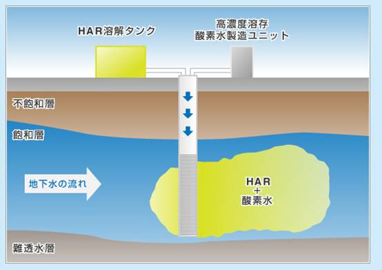 施工方式:將HAR藥劑溶于水,通過地下水注入井注入至飽和帶中的地下水中,同時注入氧氣,保證地下水和土壤中的好氧環(huán)境。